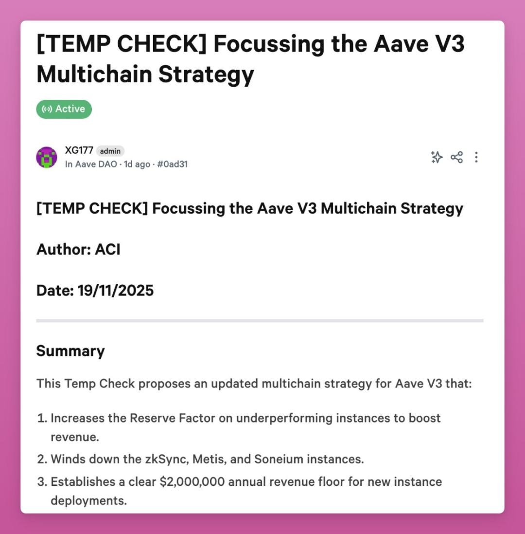 Aave 最近也投票关停了几条链上的服务,理由同样是亏钱运行。